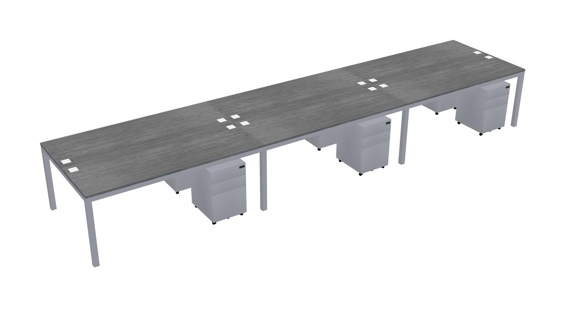 Grey Shared Rectangular Office Desk With Metal Mobile Drawers For 6 Persons