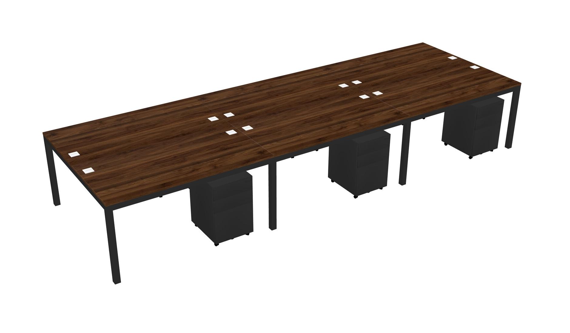 Columbia Walnut Shared Rectangular Office Desk With Metal Mobile Drawers For 6 Persons