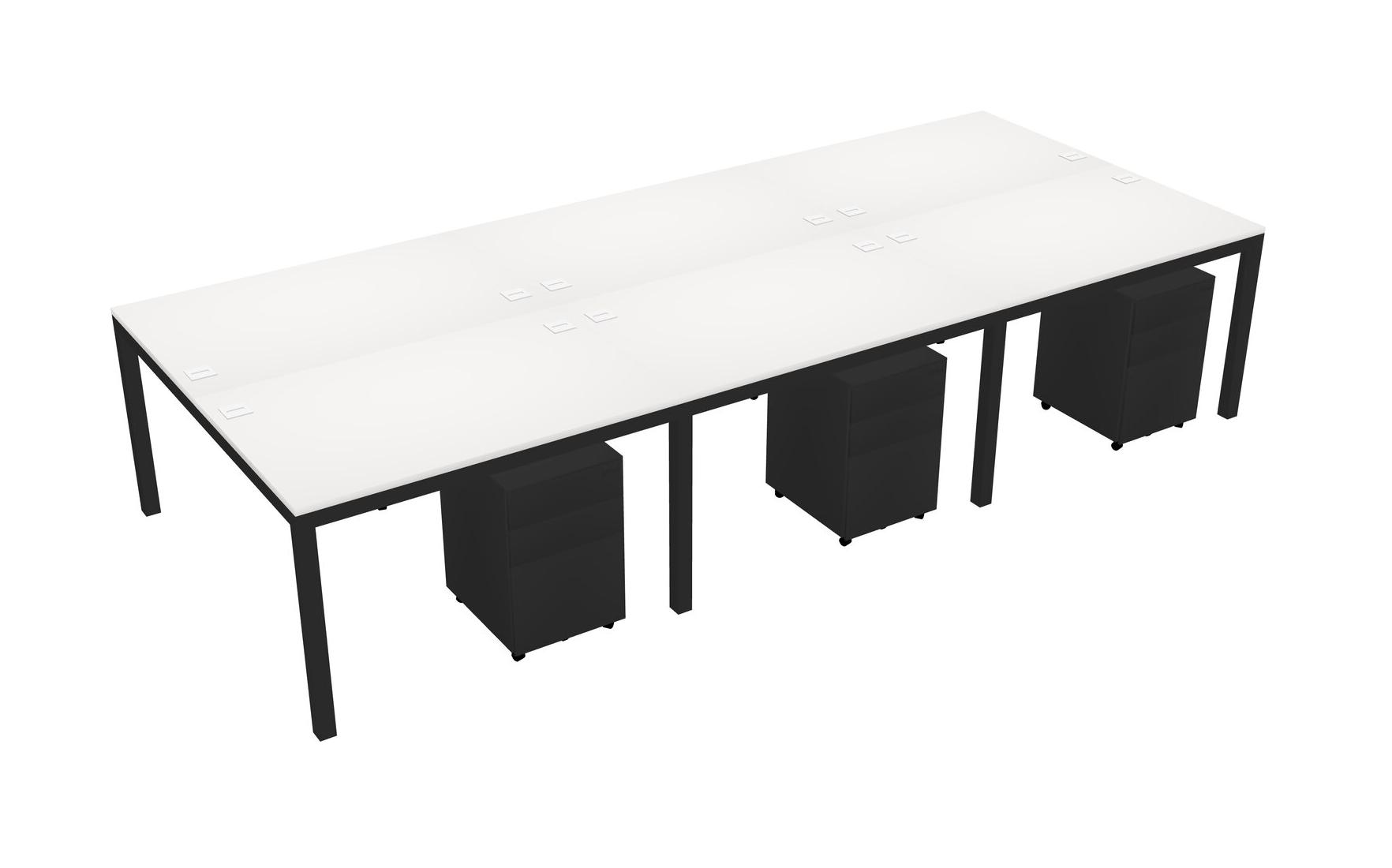 White Shared Rectangular Office Desk With Metal Mobile Drawers For 6 Persons