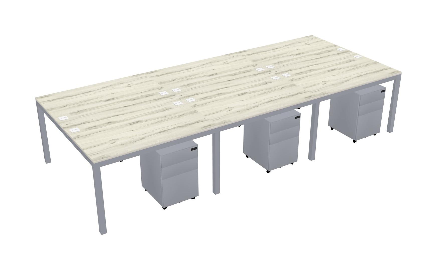 Heinne Holz Shared Rectangular Office Desk With Metal Mobile Drawers For 6 Persons