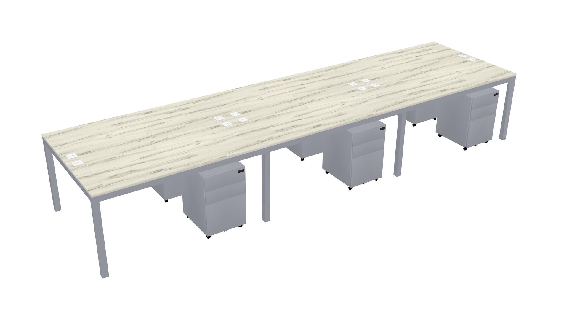 Heinne Holz Shared Rectangular Office Desk With Metal Mobile Drawers For 6 Persons