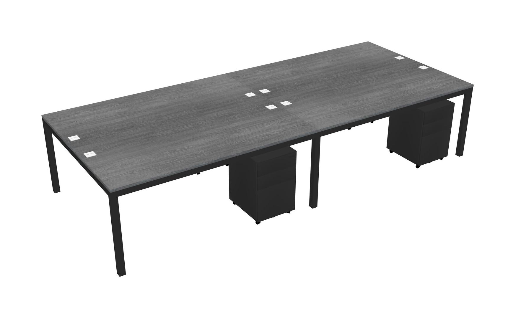 Grey Shared Rectangular Office Desk With Metal Mobile Drawers For 4 Persons