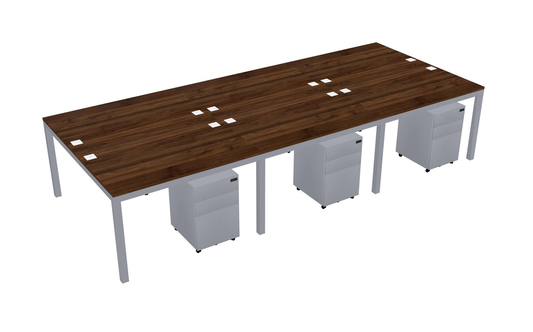 Columbia Walnut Shared Rectangular Office Desk With Metal Mobile Drawers For 6 Persons