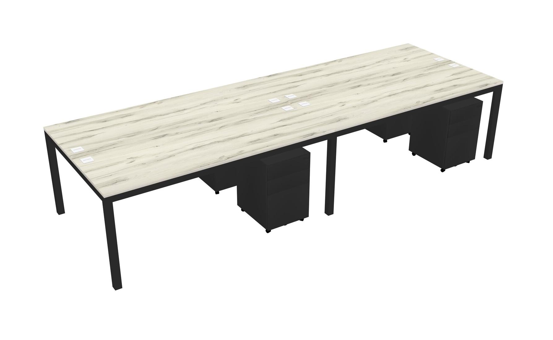 Heinne Holz Shared Rectangular Office Desk With Metal Mobile Drawers For 4 Persons