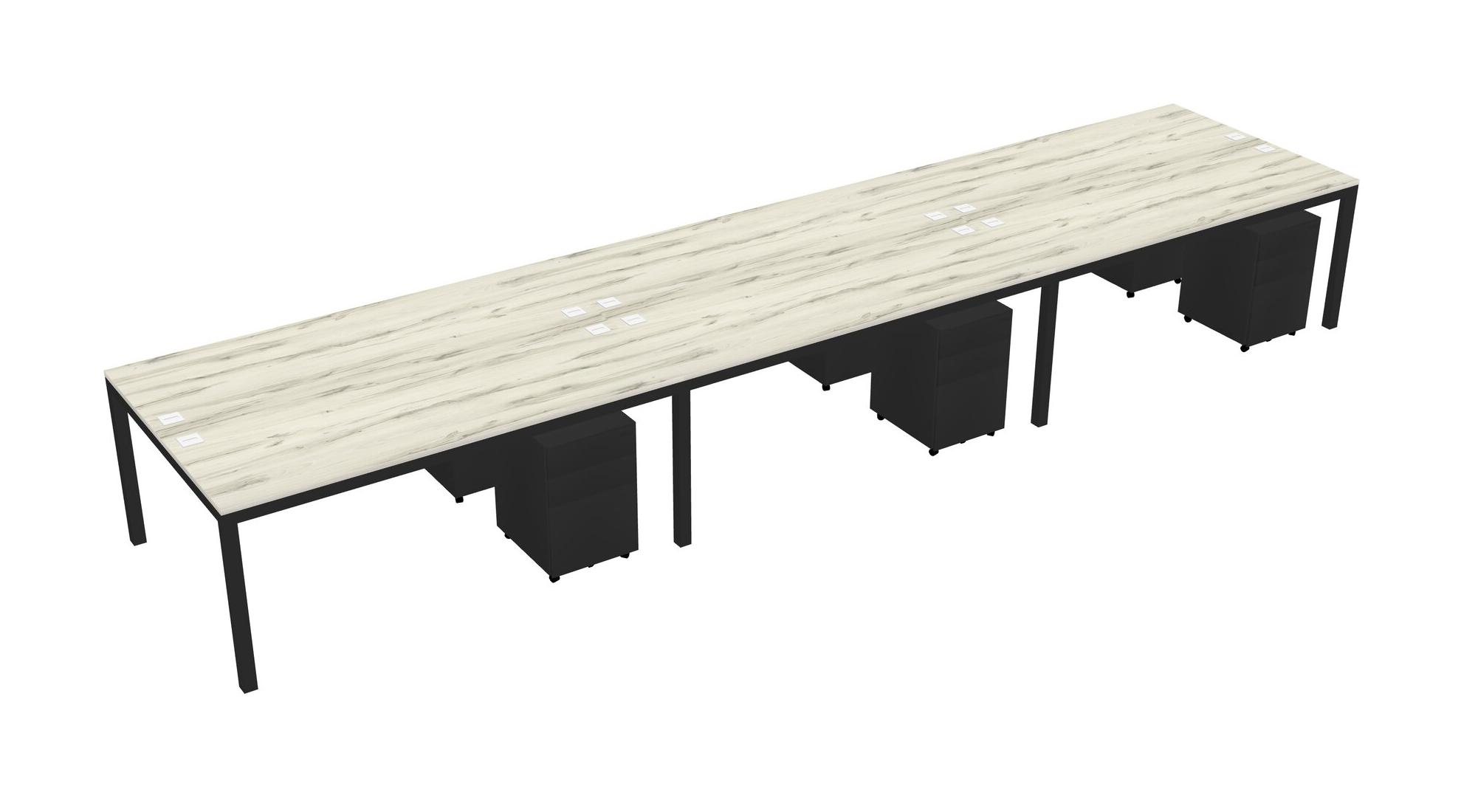 Heinne Holz Shared Rectangular Office Desk With Metal Mobile Drawers For 6 Persons