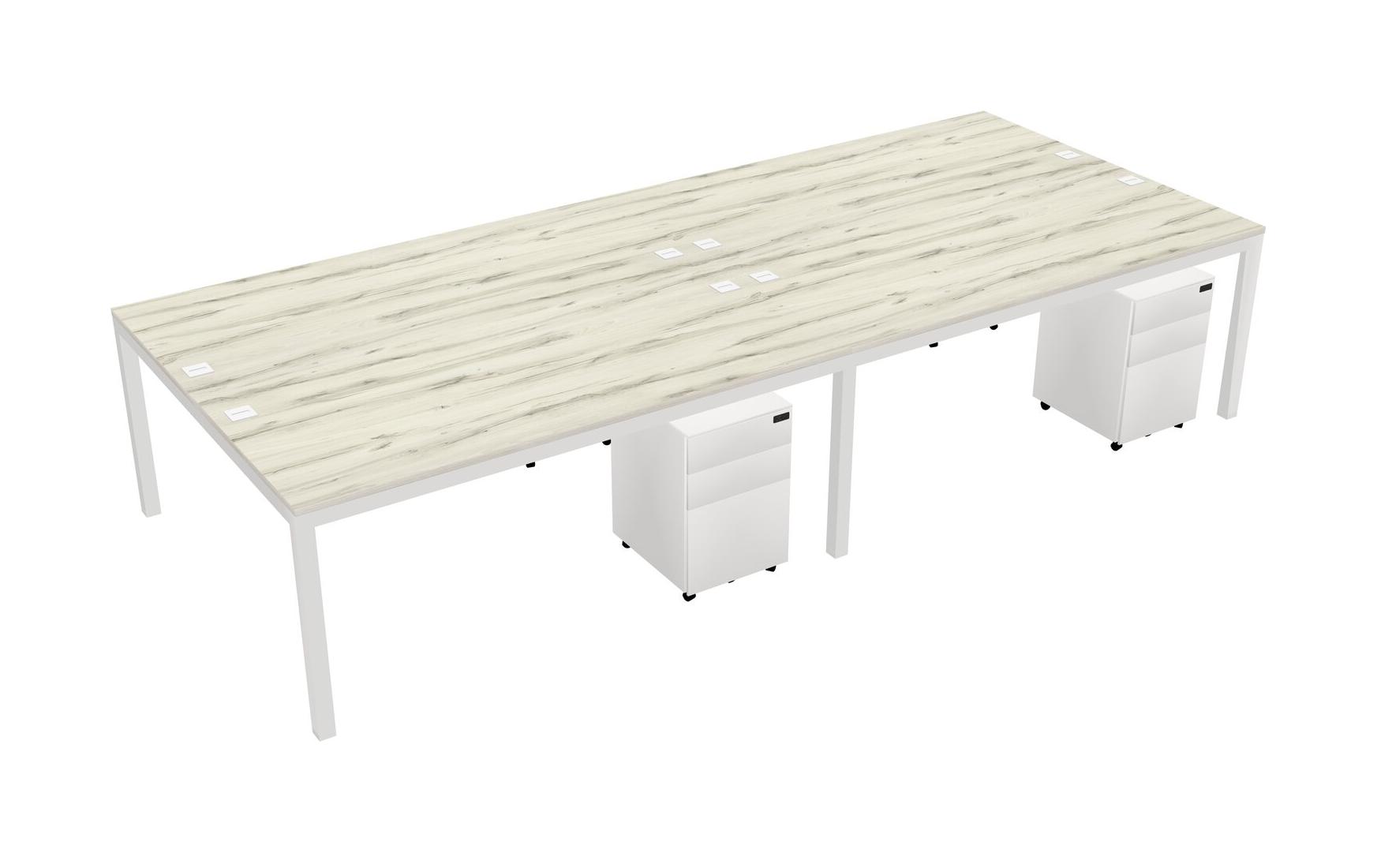 Heinne Holz Shared Rectangular Office Desk With Metal Mobile Drawers For 4 Persons