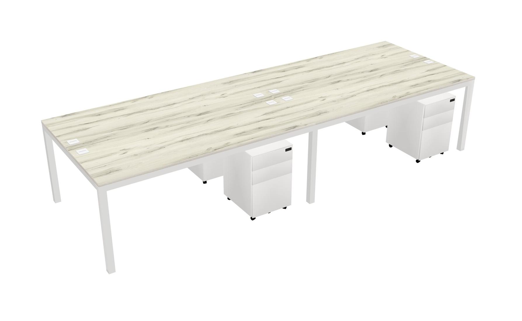 Heinne Holz Shared Rectangular Office Desk With Metal Mobile Drawers For 4 Persons