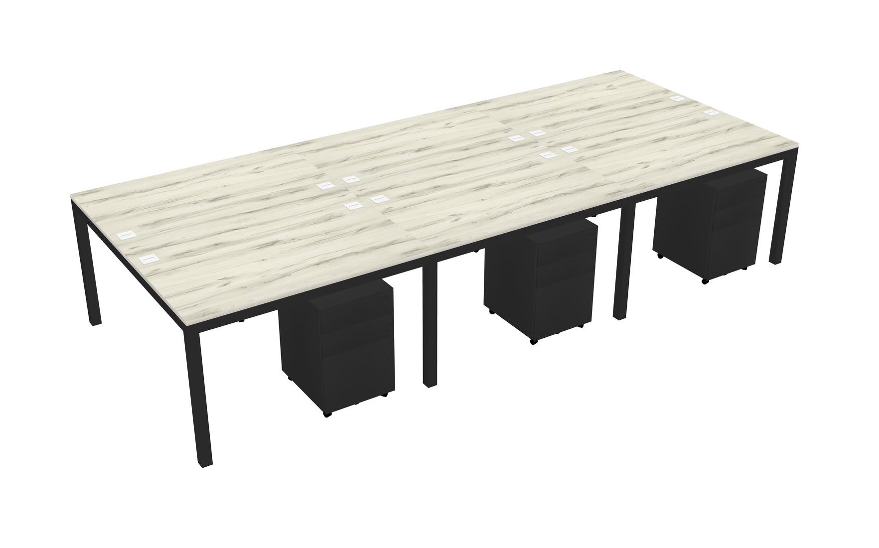 Heinne Holz Shared Rectangular Office Desk With Metal Mobile Drawers For 6 Persons