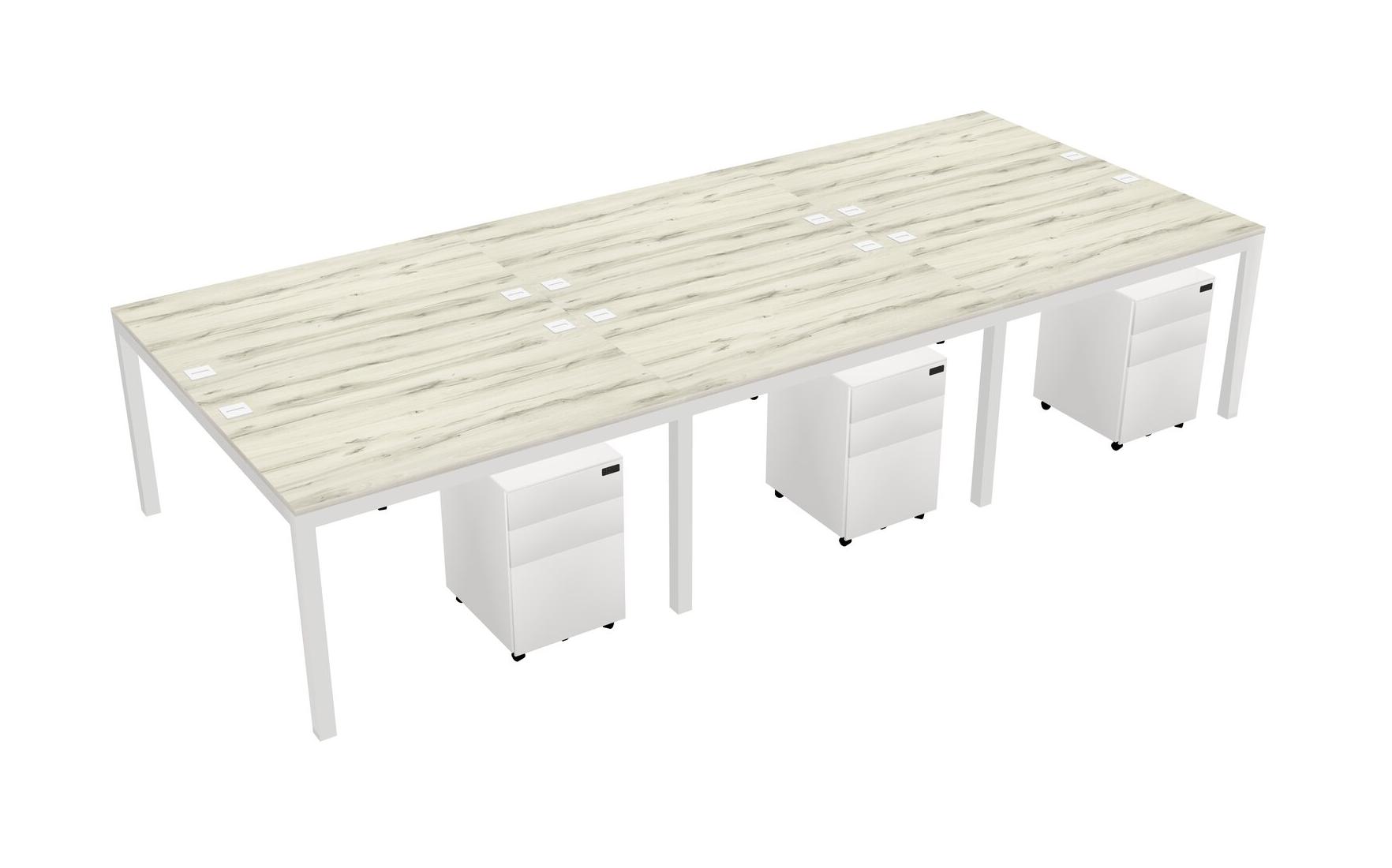 Heinne Holz Shared Rectangular Office Desk With Metal Mobile Drawers For 6 Persons