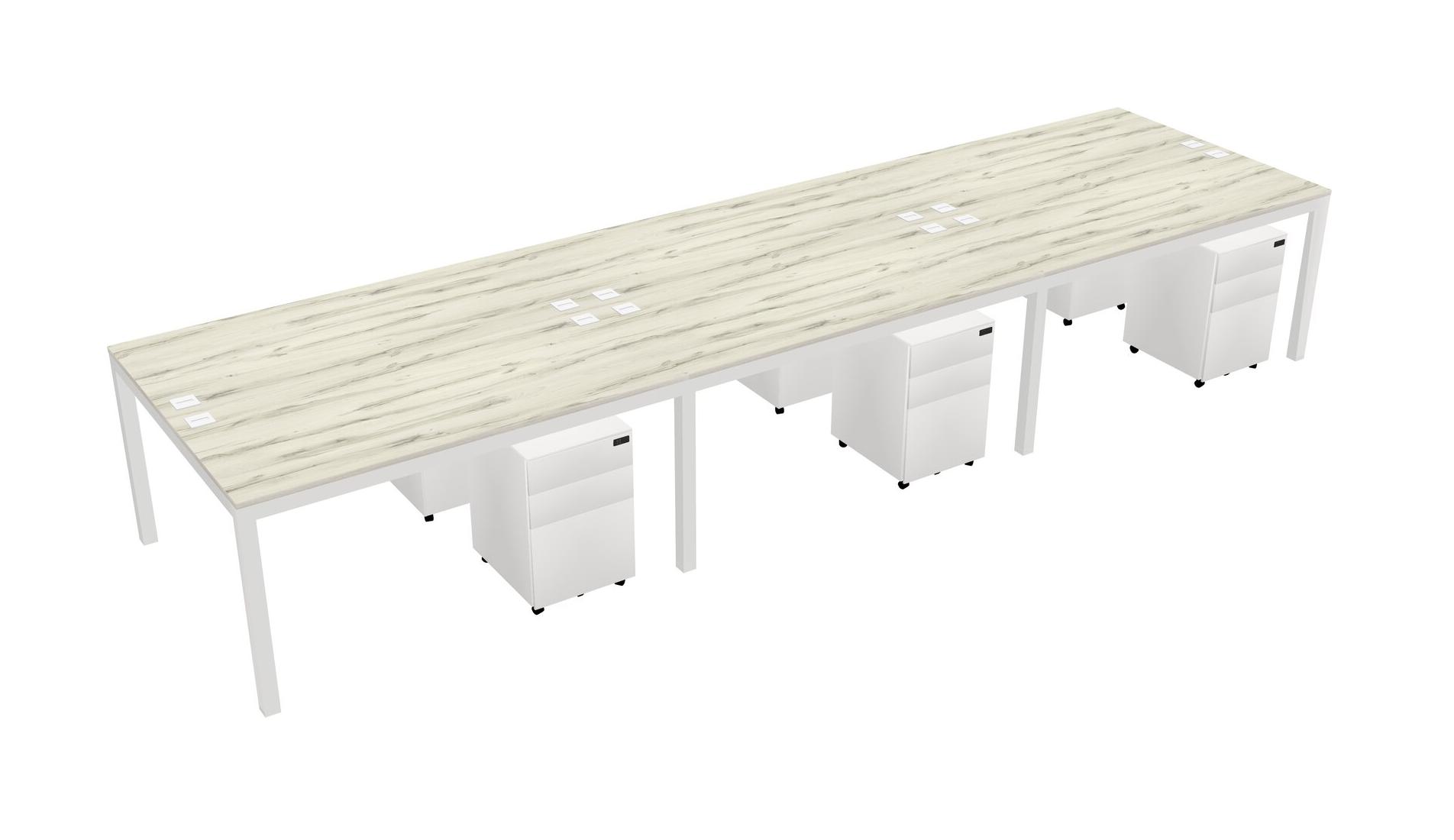 Heinne Holz Shared Rectangular Office Desk With Metal Mobile Drawers For 6 Persons