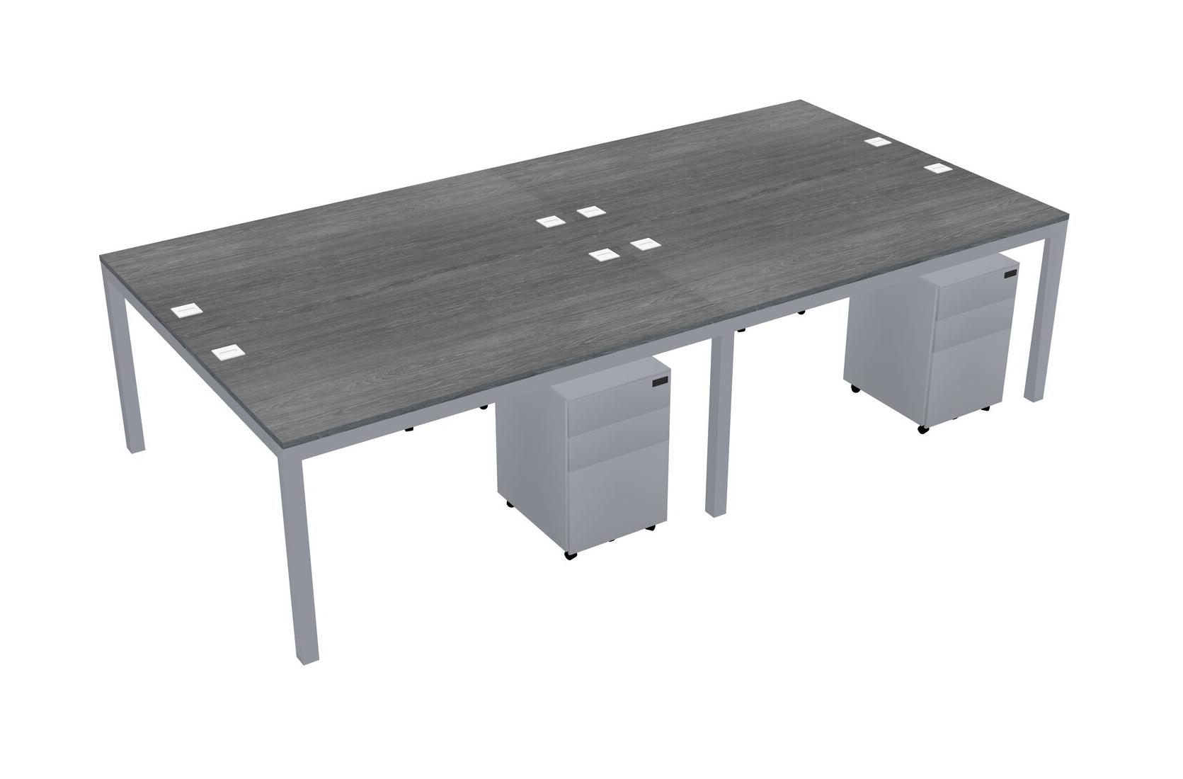 Grey Shared Rectangular Office Desk With Metal Mobile Drawers For 4 Persons