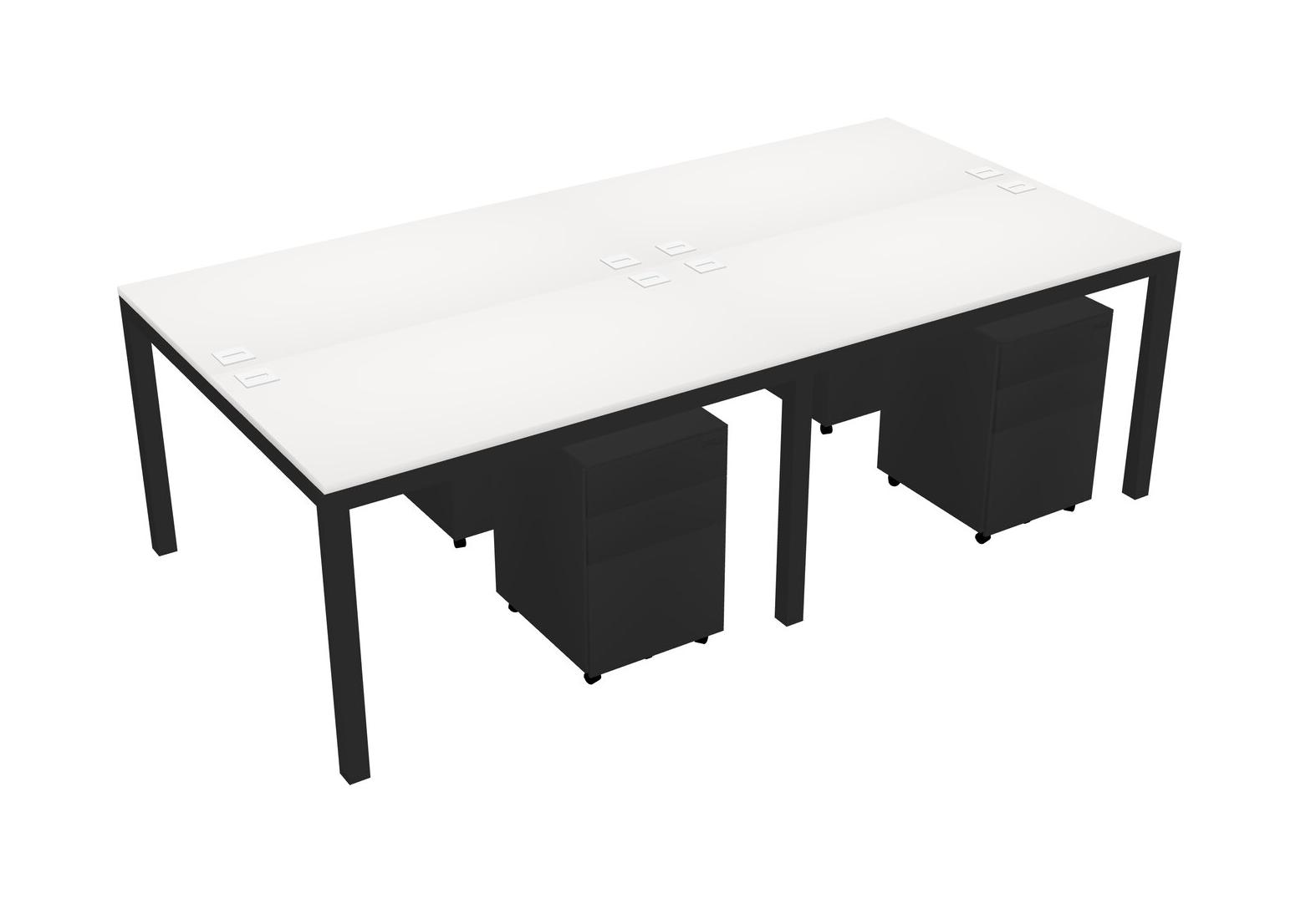 White Shared Rectangular Office Desk With Metal Mobile Drawers For 4 Persons