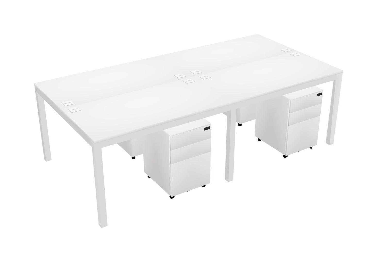White Shared Rectangular Office Desk With Metal Mobile Drawers For 4 Persons