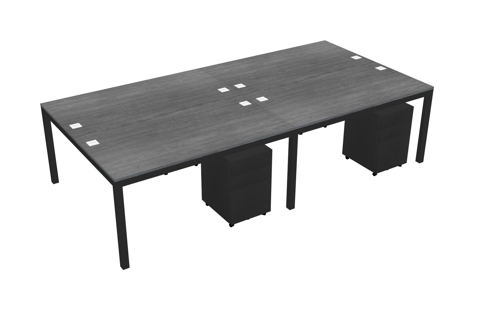 Grey Shared Rectangular Office Desk With Metal Mobile Drawers For 4 Persons