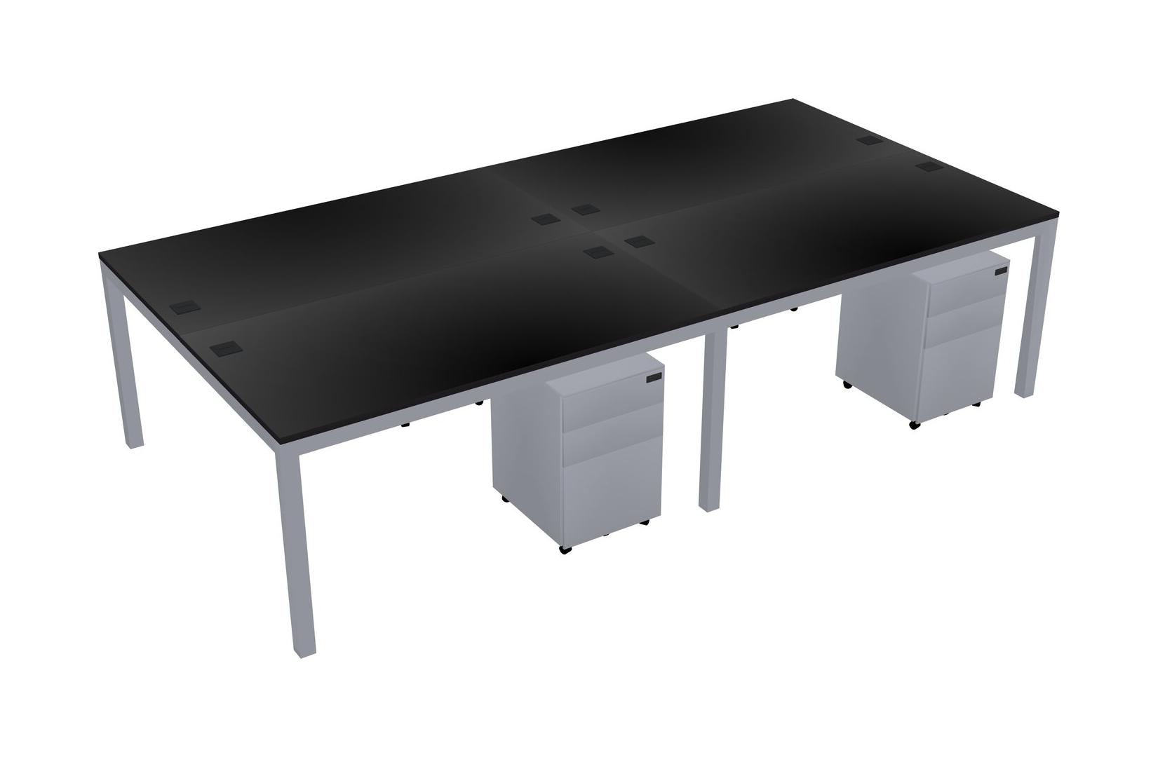 Black Shared Rectangular Office Desk With Metal Mobile Drawers For 4 Persons
