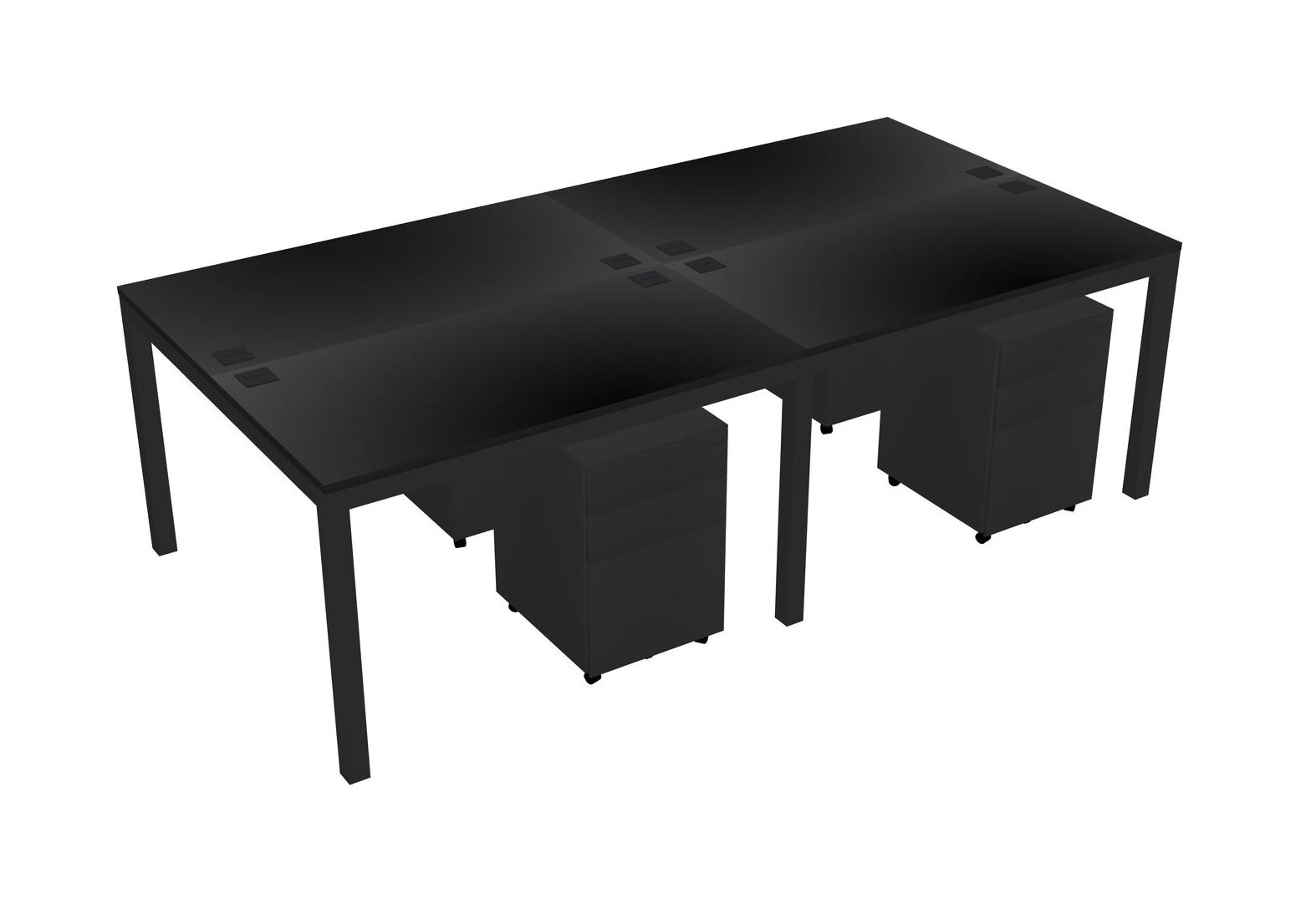 Black Shared Rectangular Office Desk With Metal Mobile Drawers For 4 Persons