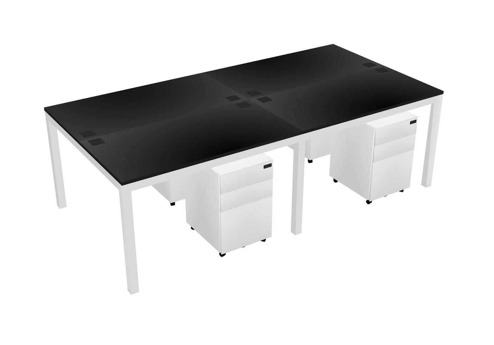 Black Shared Rectangular Office Desk With Metal Mobile Drawers For 4 Persons