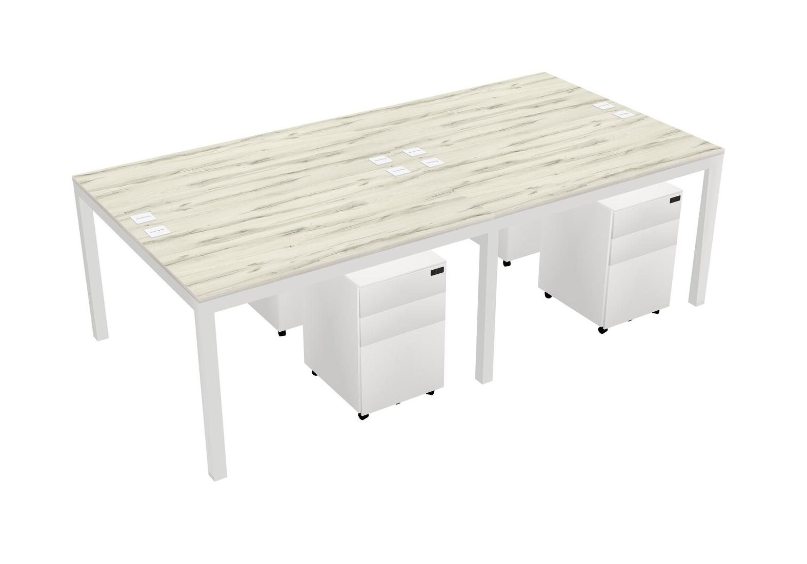 Heinne Holz Shared Rectangular Office Desk With Metal Mobile Drawers For 4 Persons