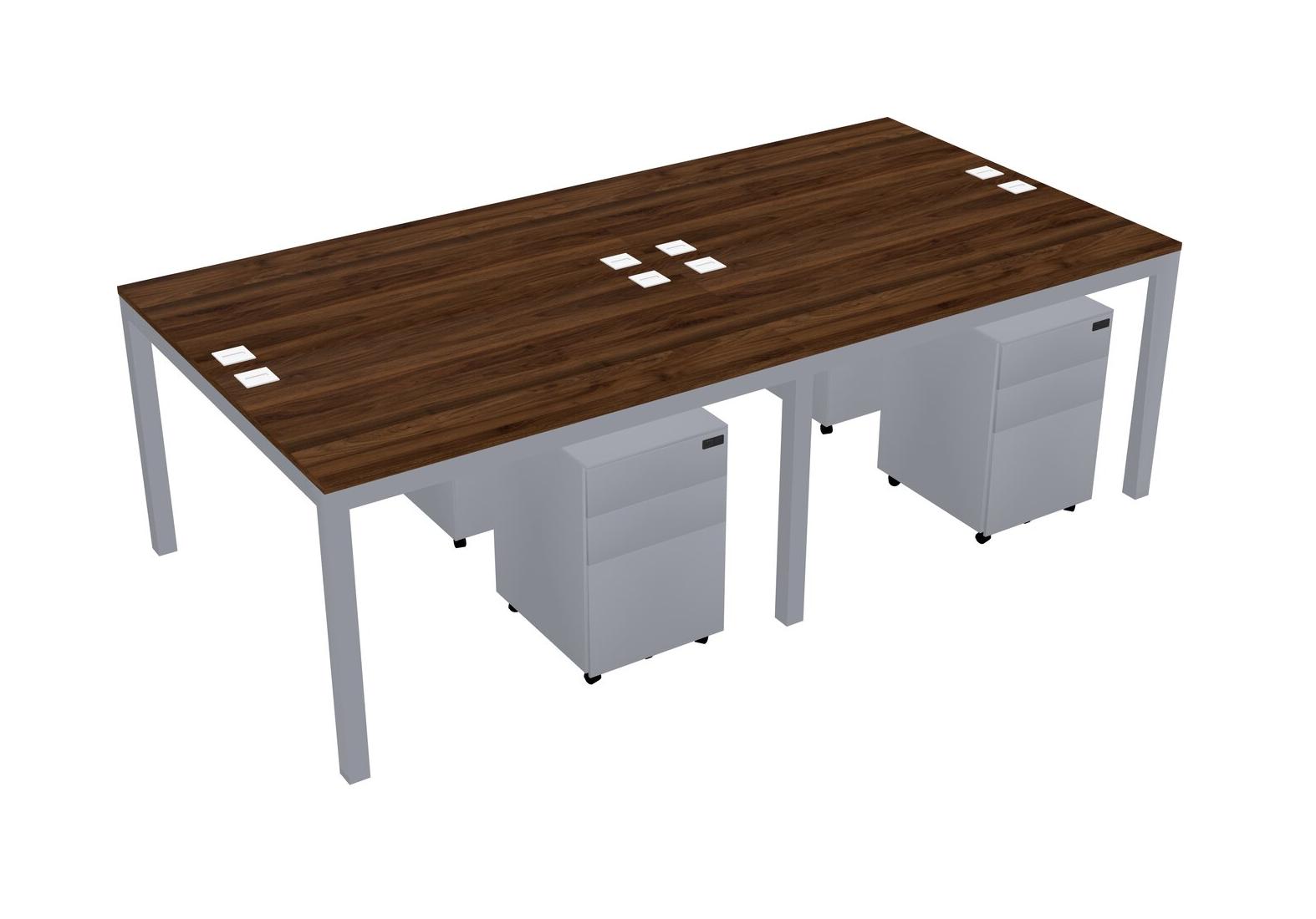 Columbia Walnut Shared Rectangular Office Desk With Metal Mobile Drawers For 4 Persons