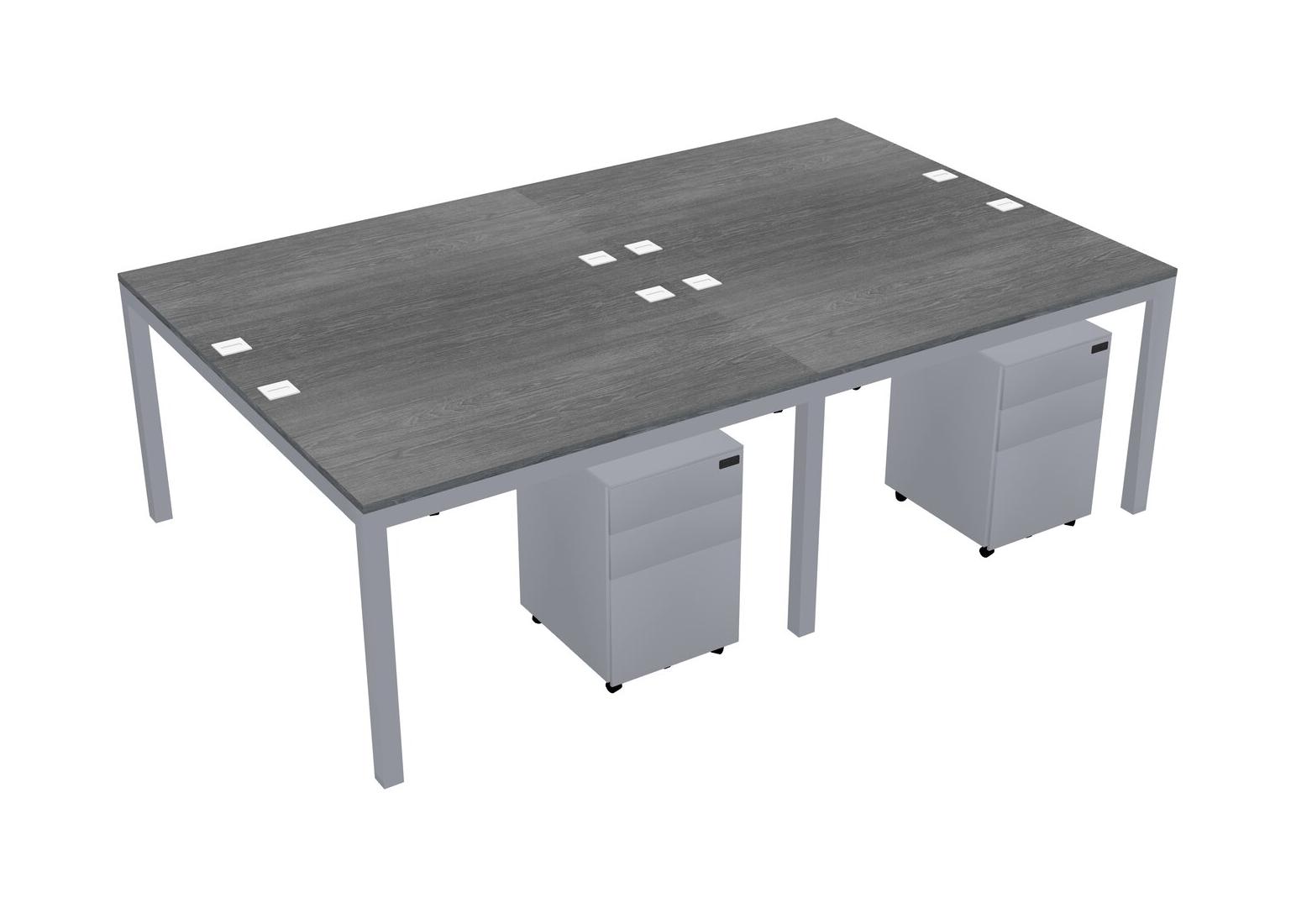 Grey Shared Rectangular Office Desk With Metal Mobile Drawers For 4 Persons