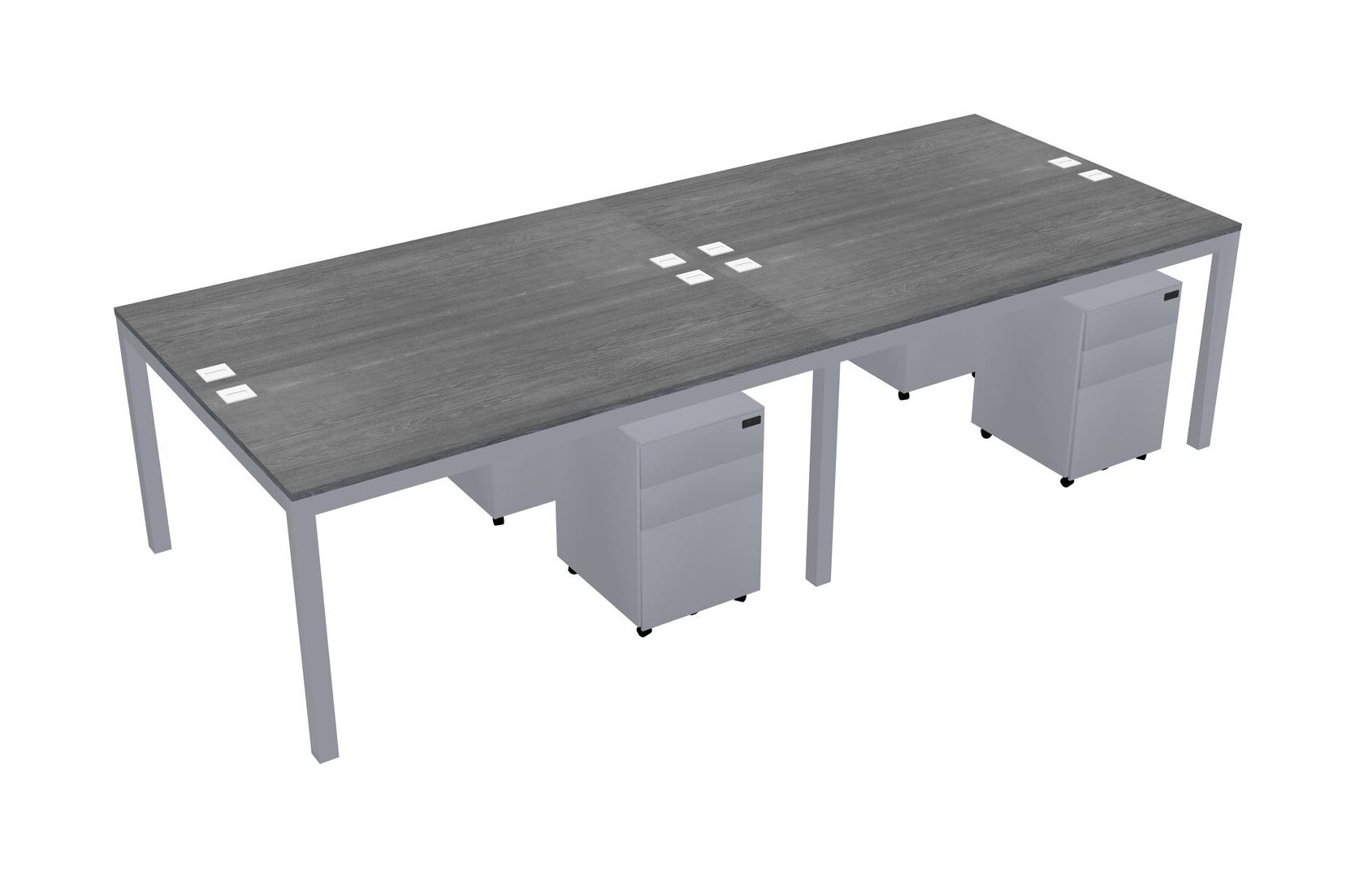 Grey Shared Rectangular Office Desk With Metal Mobile Drawers For 4 Persons