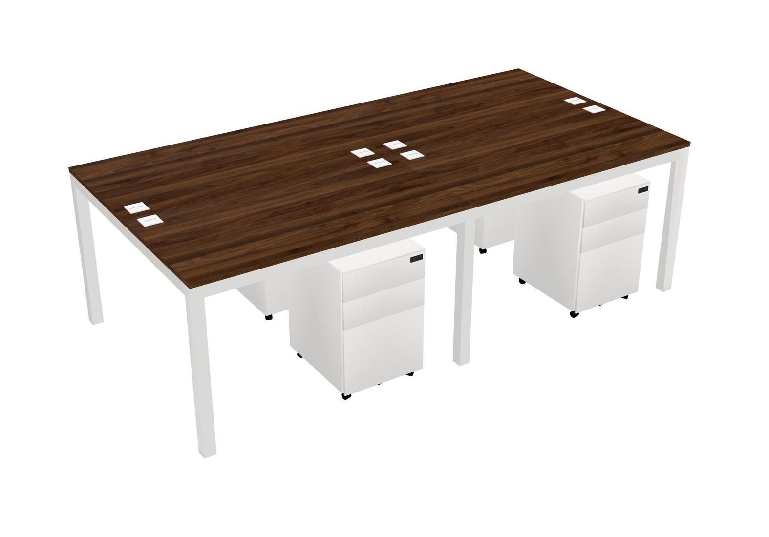 Columbia Walnut Shared Rectangular Office Desk With Metal Mobile Drawers For 4 Persons