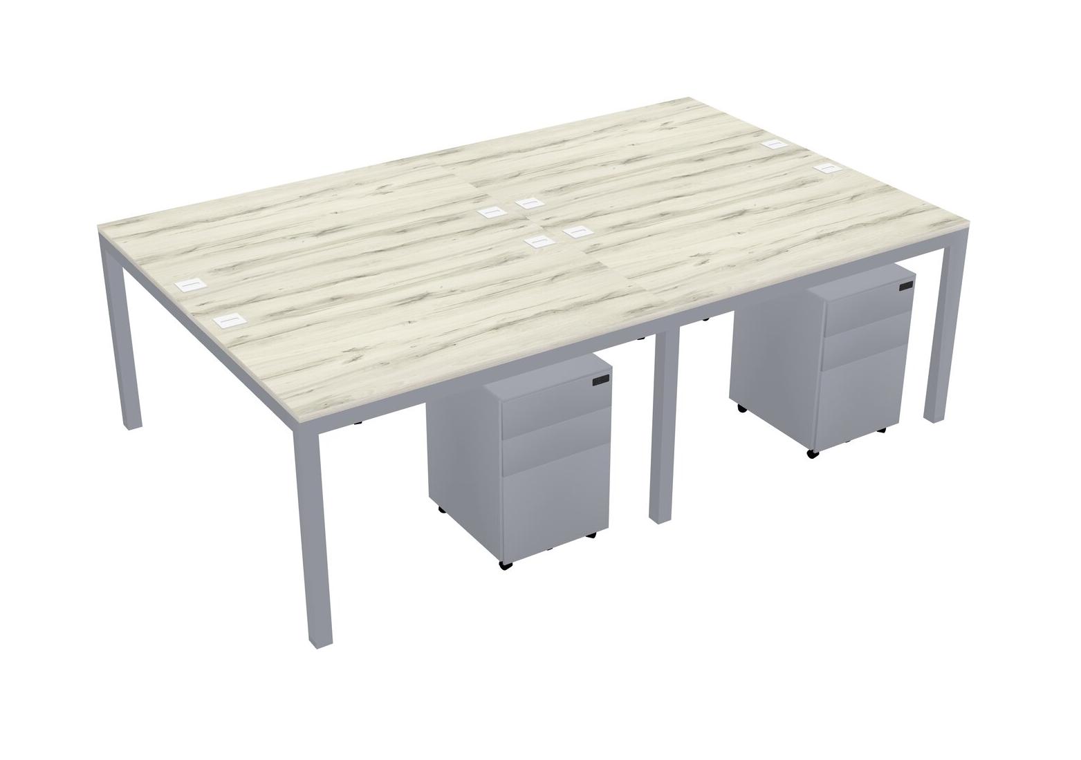 Heinne Holz Shared Rectangular Office Desk With Metal Mobile Drawers For 4 Persons