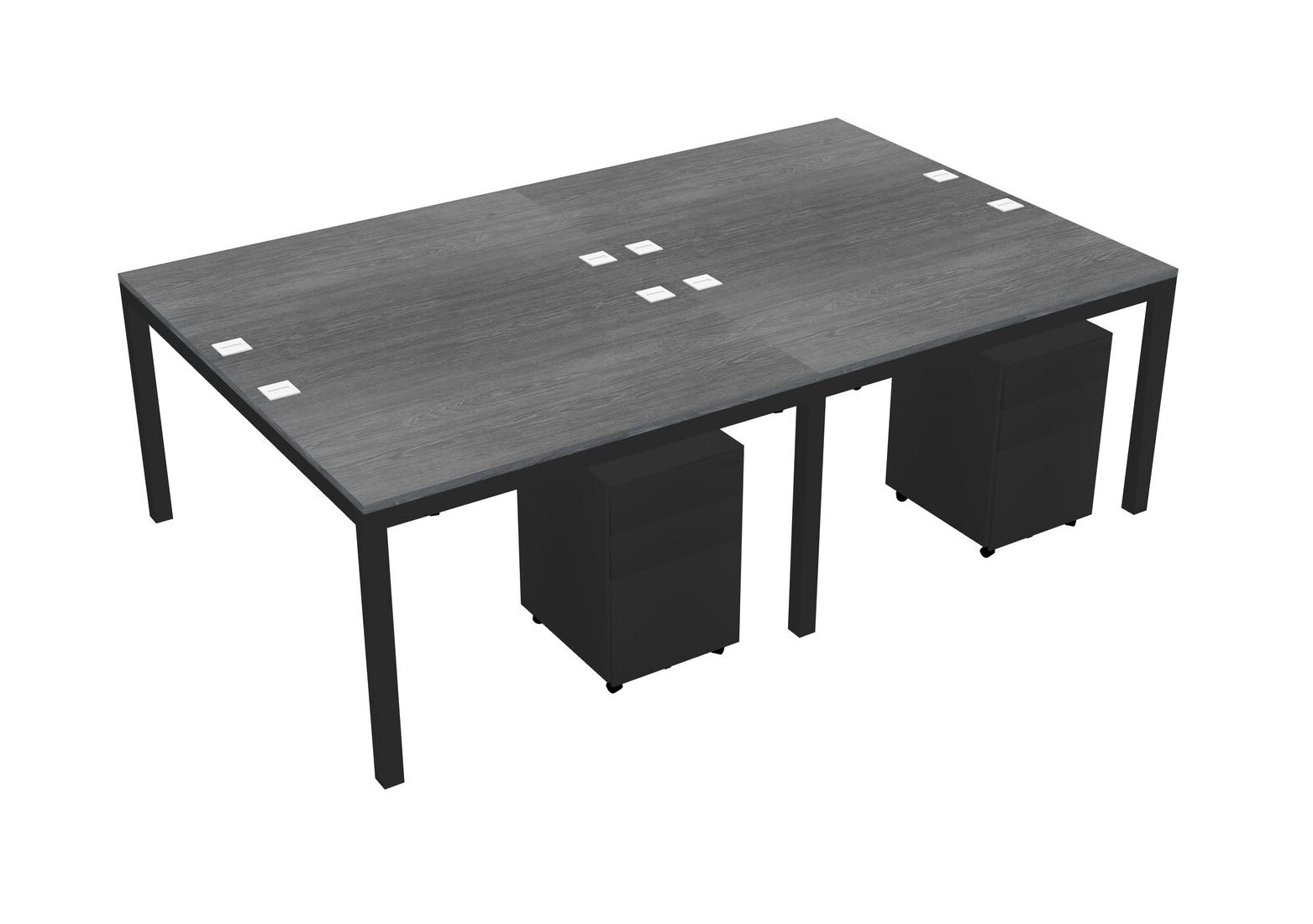 Grey Shared Rectangular Office Desk With Metal Mobile Drawers For 4 Persons