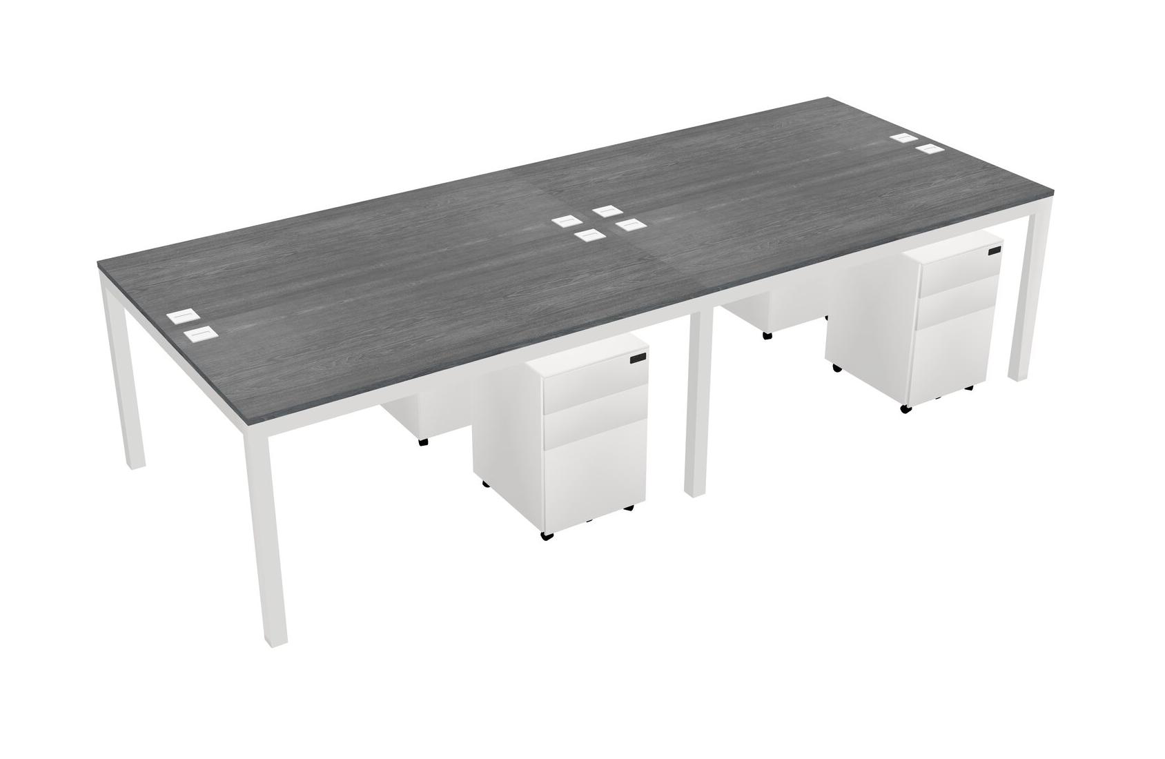 Grey Shared Rectangular Office Desk With Metal Mobile Drawers For 4 Persons