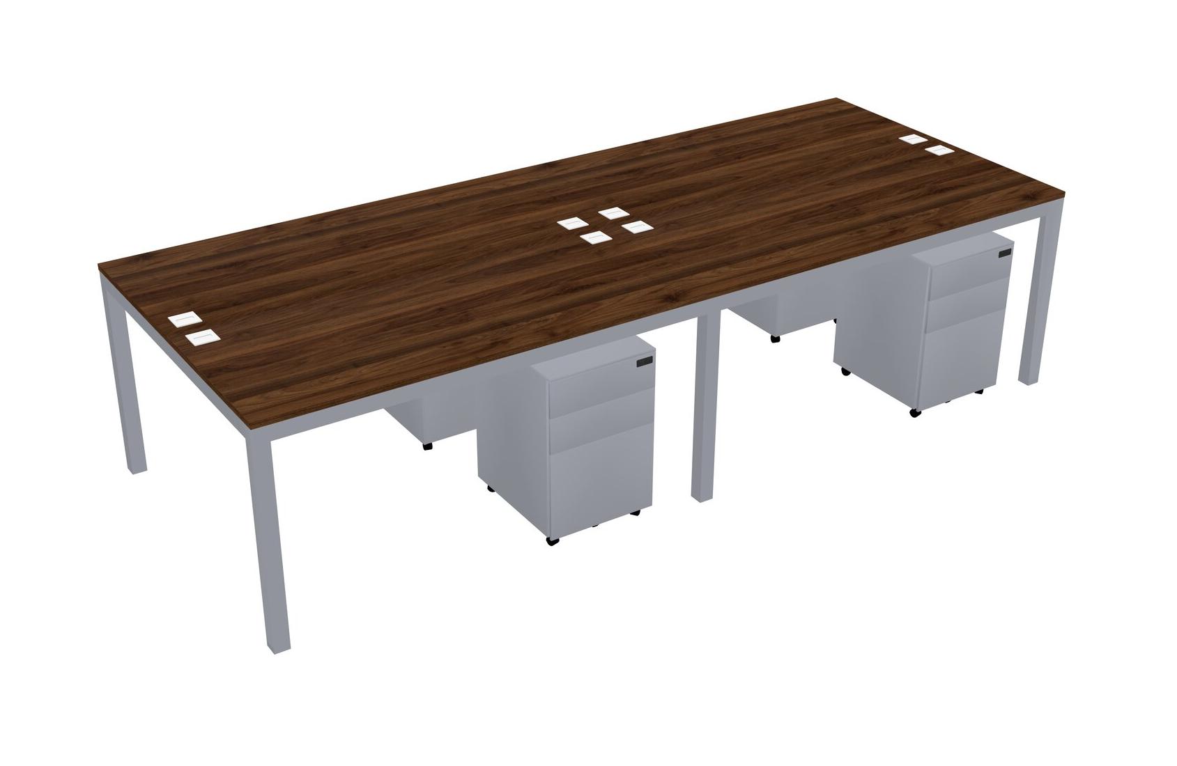 Columbia Walnut Shared Rectangular Office Desk With Metal Mobile Drawers For 4 Persons