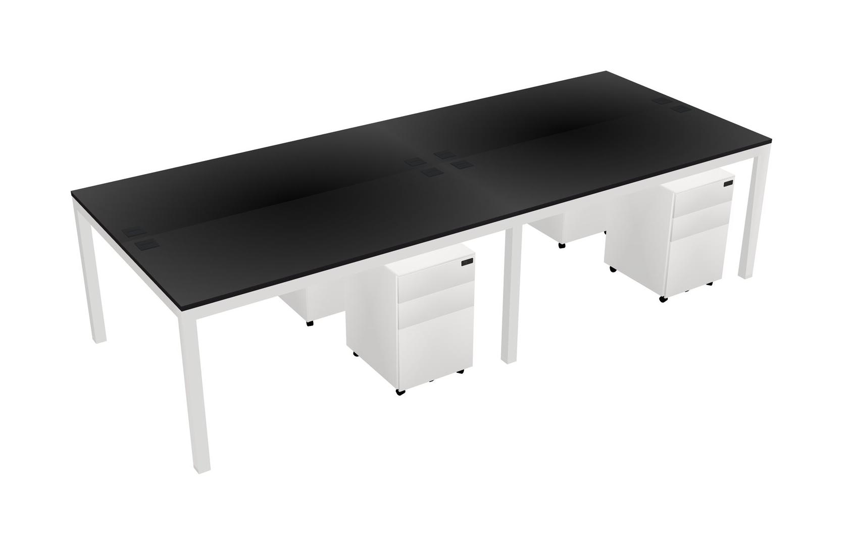 Black Shared Rectangular Office Desk With Metal Mobile Drawers For 4 Persons