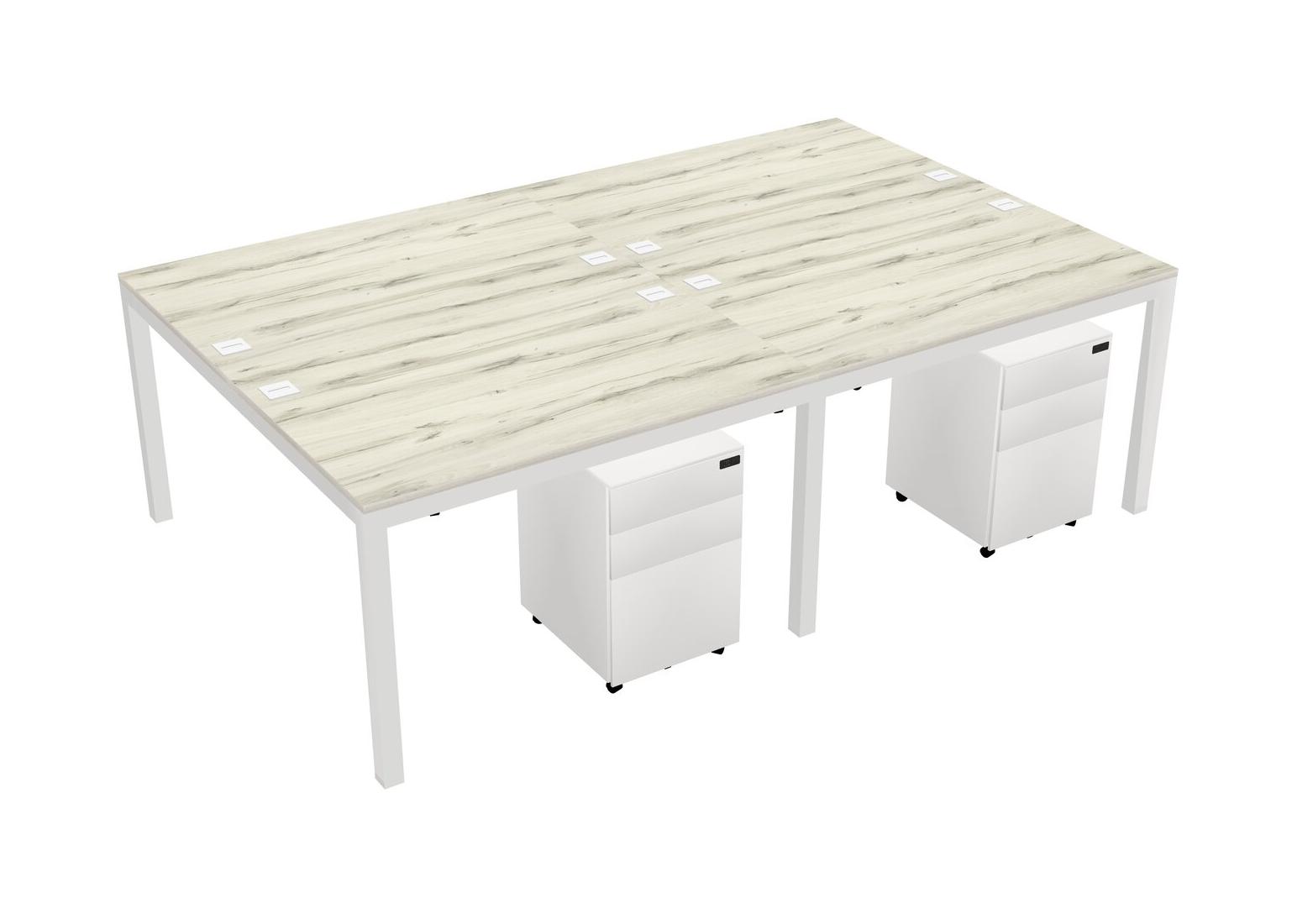 Heinne Holz Shared Rectangular Office Desk With Metal Mobile Drawers For 4 Persons