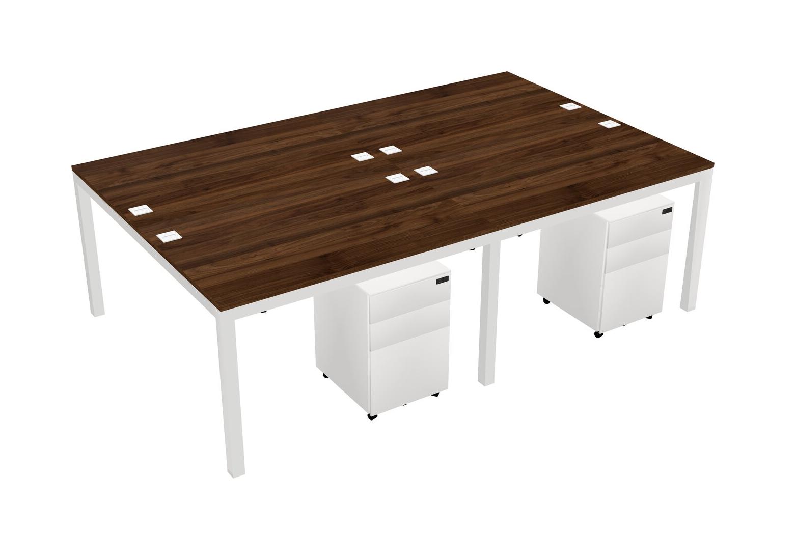 Columbia Walnut Shared Rectangular Office Desk With Metal Mobile Drawers For 4 Persons