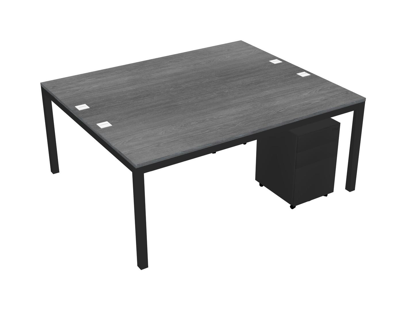 Grey Shared Rectangular Office Desk With Metal Mobile Drawers For 2 Persons