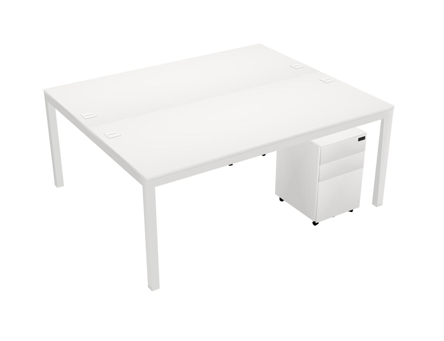White Shared Rectangular Office Desk With Metal Mobile Drawers For 2 Persons