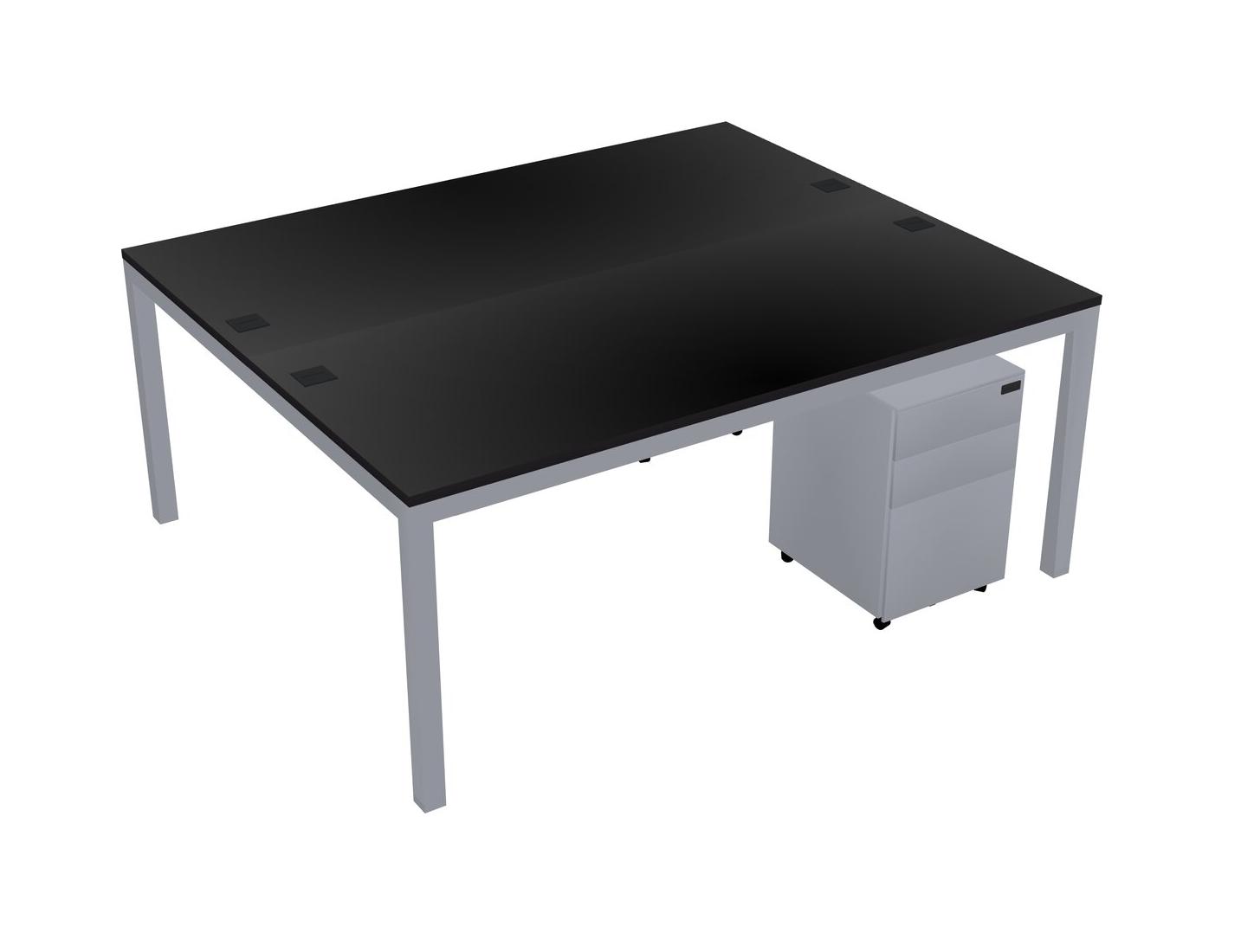 Black Shared Rectangular Office Desk With Metal Mobile Drawers For 2 Persons