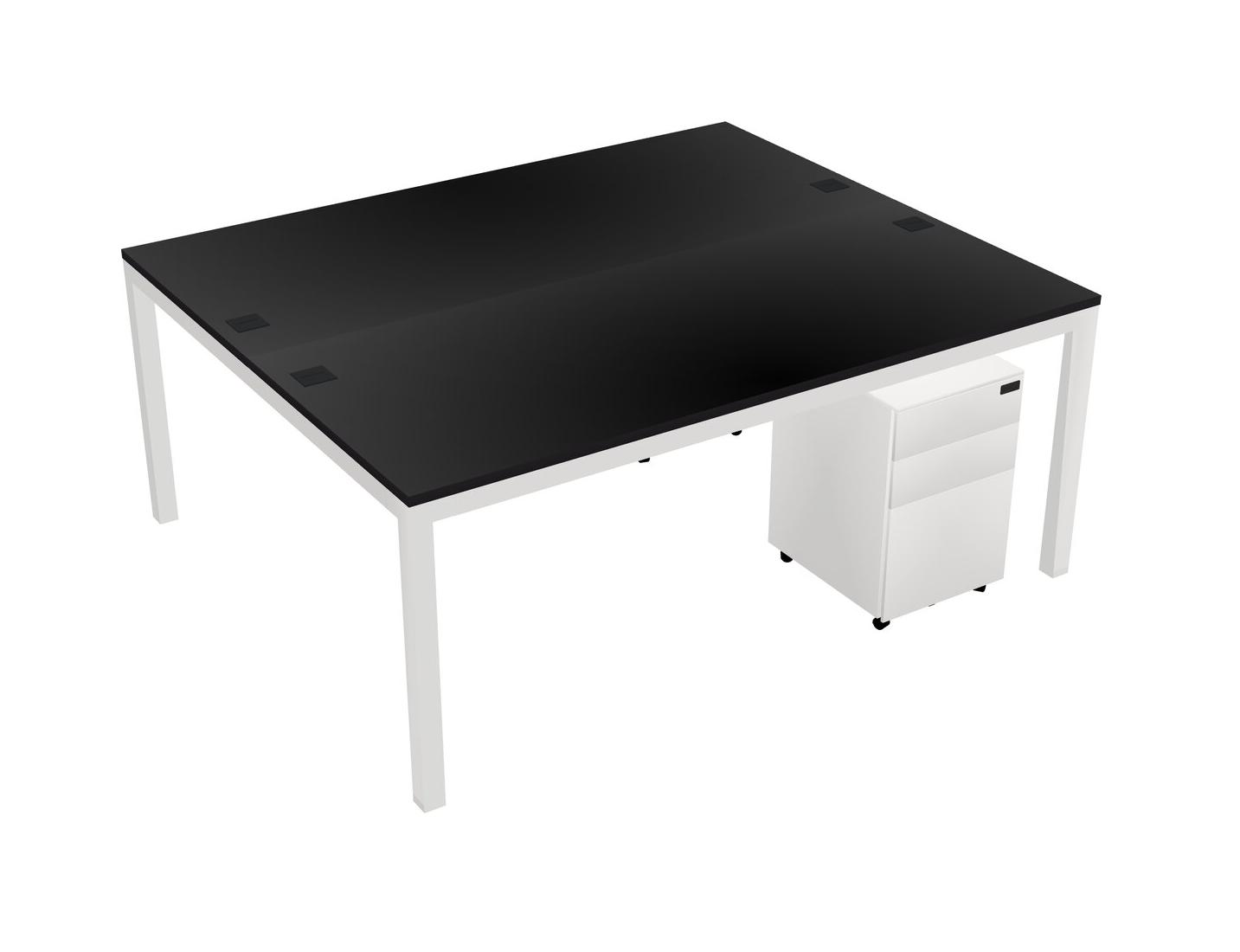 Black Shared Rectangular Office Desk With Metal Mobile Drawers For 2 Persons
