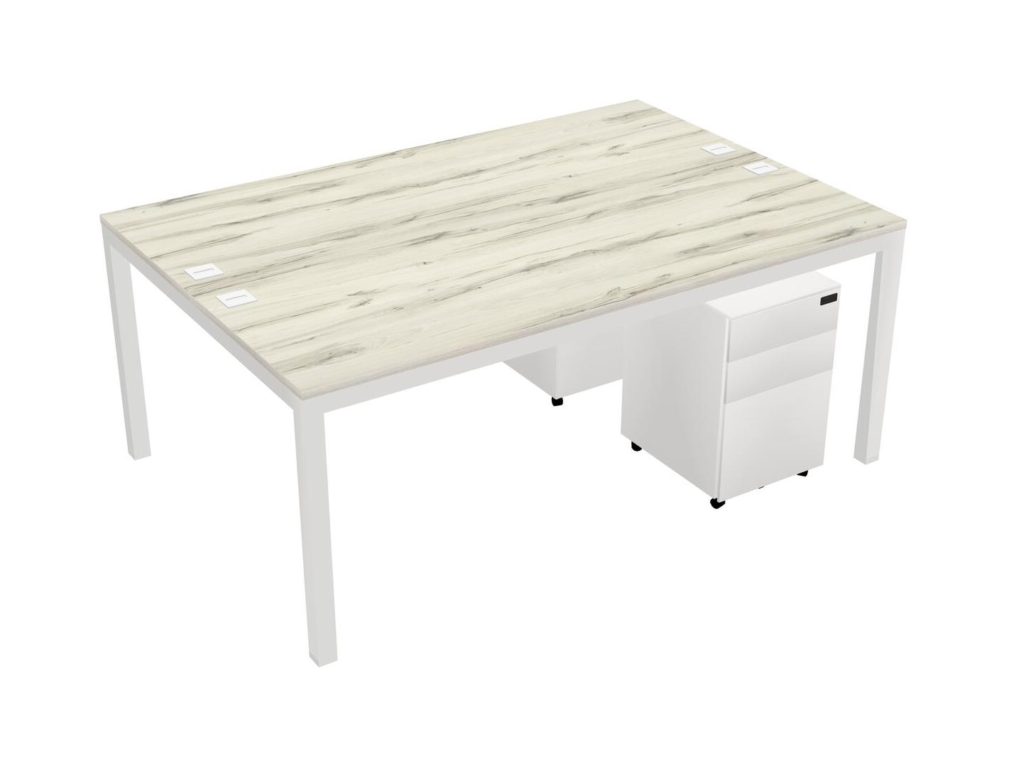 Heinne Holz Shared Rectangular Office Desk With Metal Mobile Drawers For 2 Persons