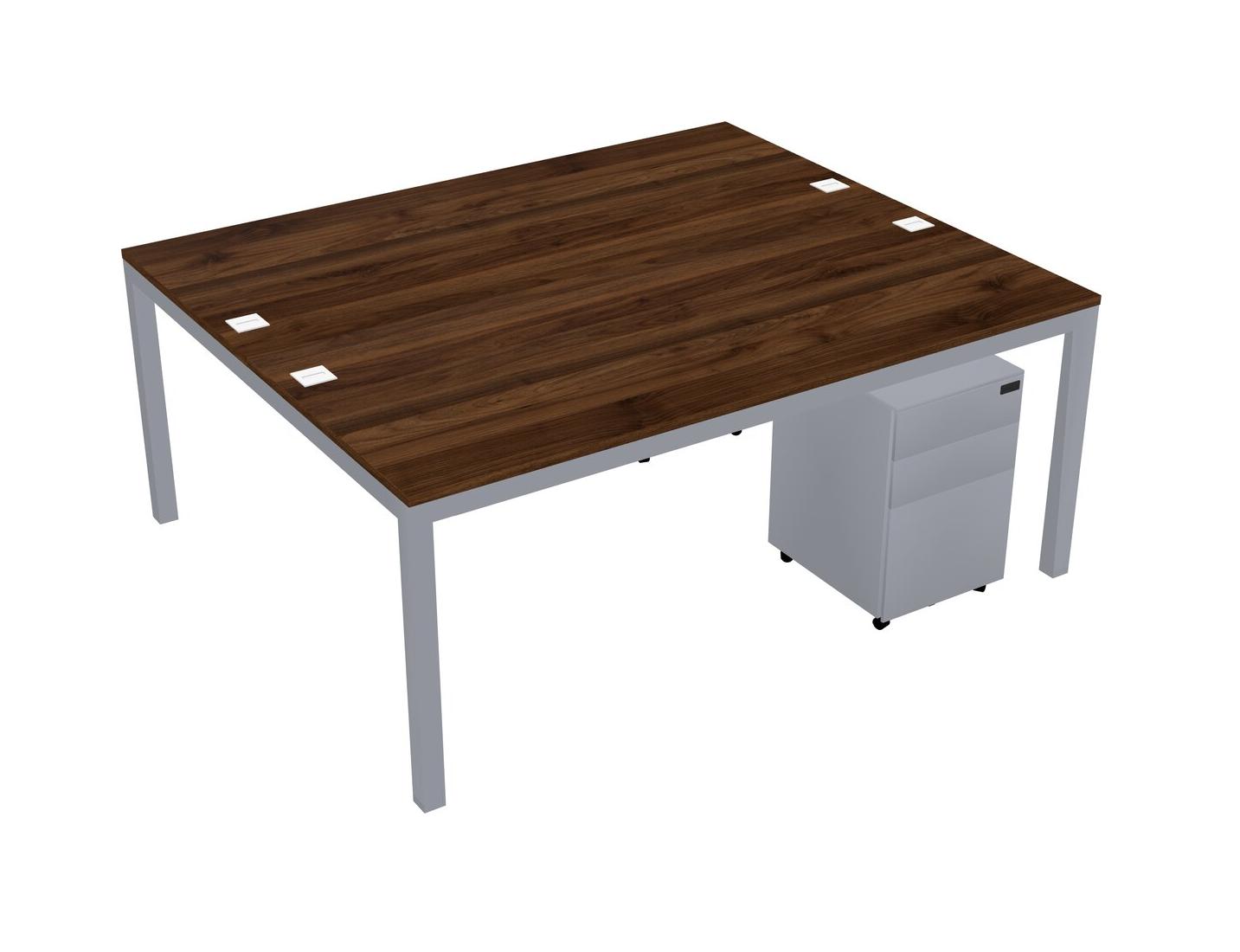 Columbia Walnut Shared Rectangular Office Desk With Metal Mobile Drawers For 2 Persons