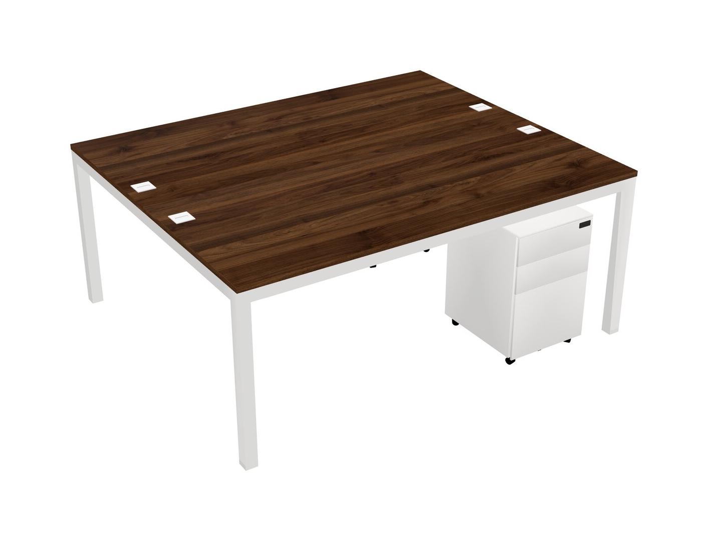 Columbia Walnut Shared Rectangular Office Desk With Metal Mobile Drawers For 2 Persons