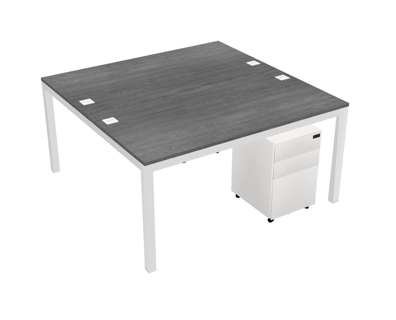 Grey Shared Rectangular Office Desk With Metal Mobile Drawers For 2 Persons