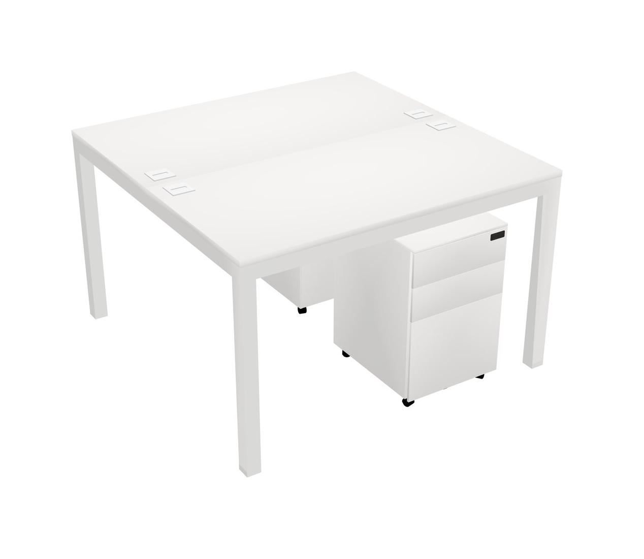 White Shared Rectangular Office Desk With Metal Mobile Drawers For 2 Persons