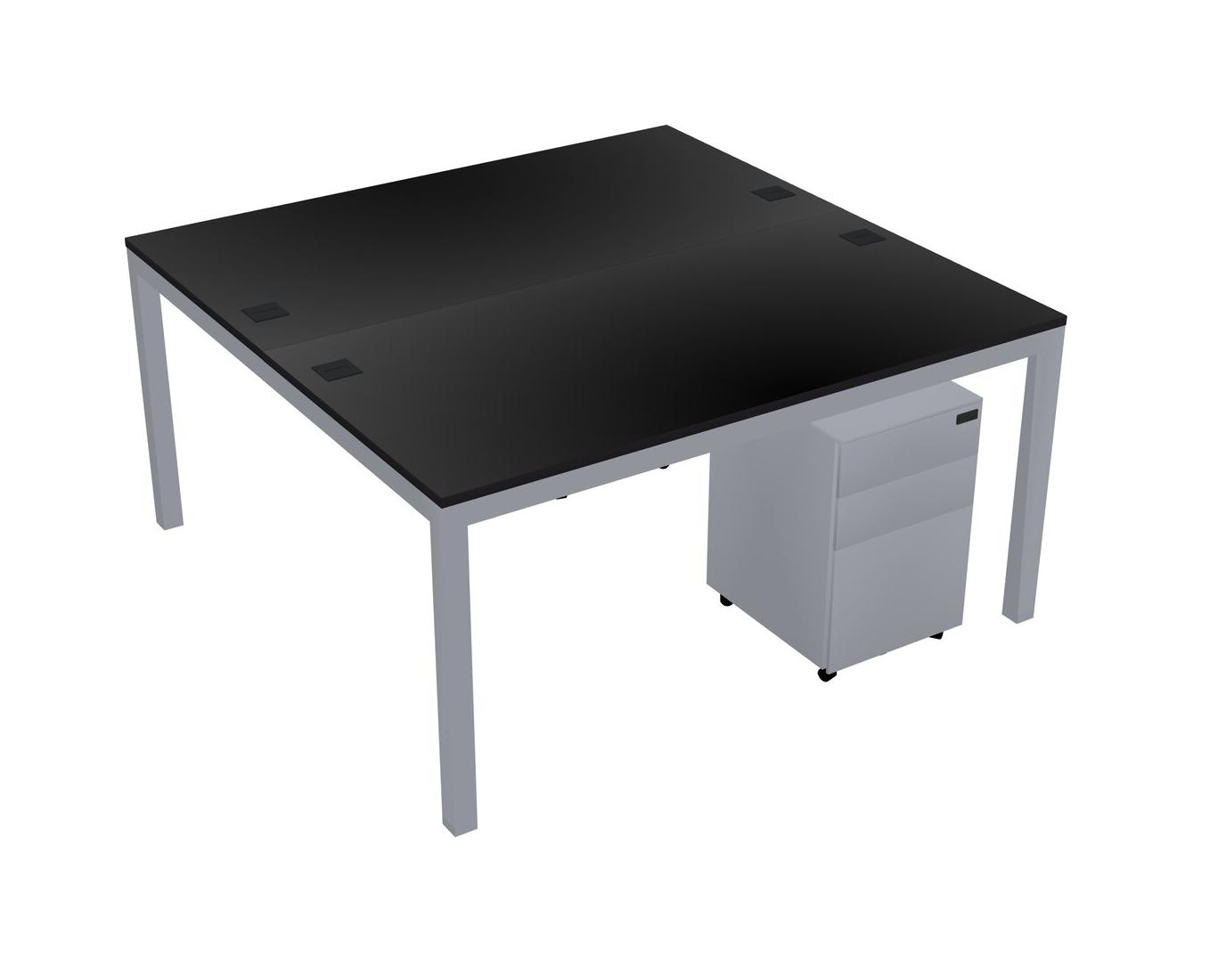 Black Shared Rectangular Office Desk With Metal Mobile Drawers For 2 Persons