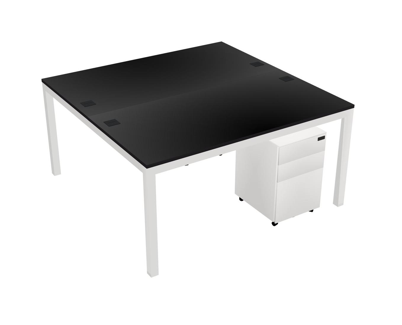 Black Shared Rectangular Office Desk With Metal Mobile Drawers For 2 Persons