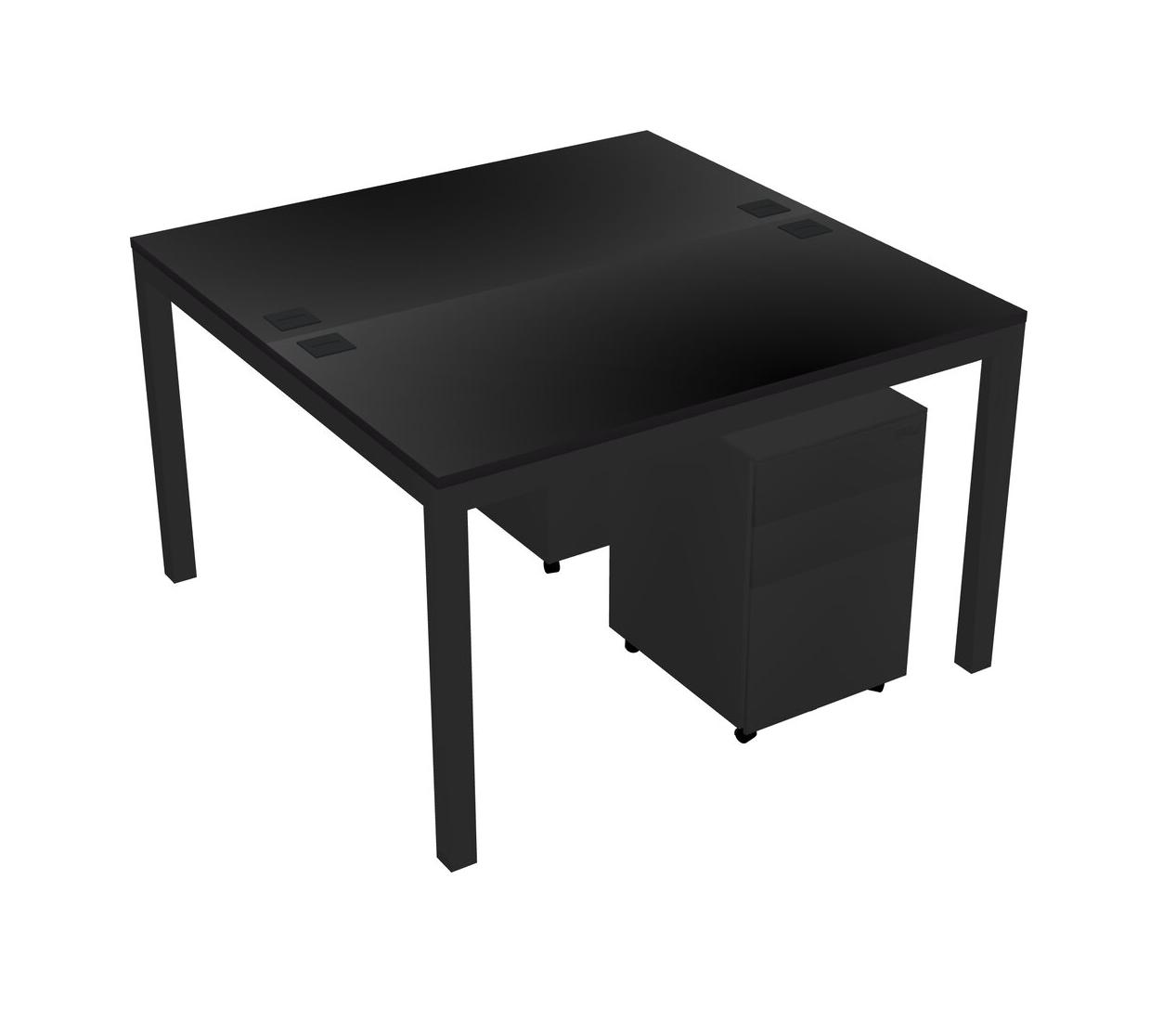 Black Shared Rectangular Office Desk With Metal Mobile Drawers For 2 Persons