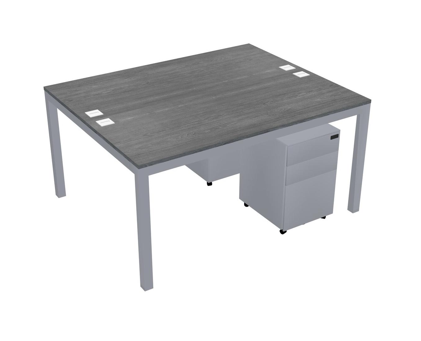 Grey Shared Rectangular Office Desk With Metal Mobile Drawers For 2 Persons