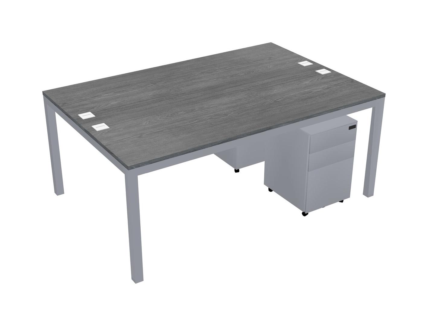 Grey Shared Rectangular Office Desk With Metal Mobile Drawers For 2 Persons