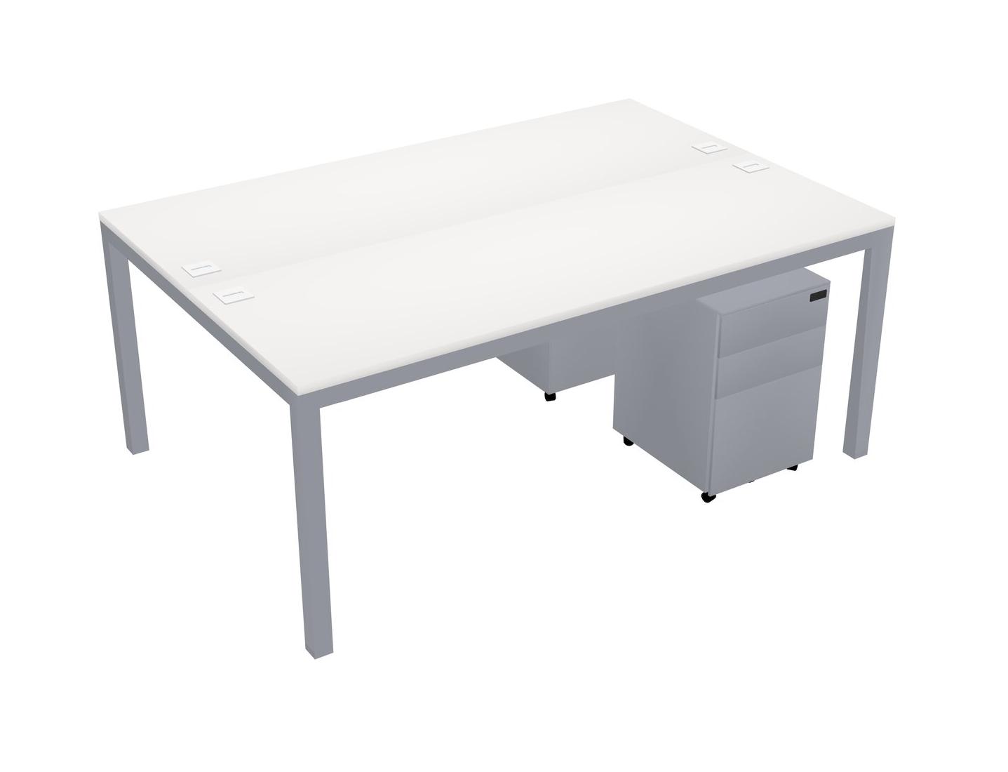 White Shared Rectangular Office Desk With Metal Mobile Drawers For 2 Persons