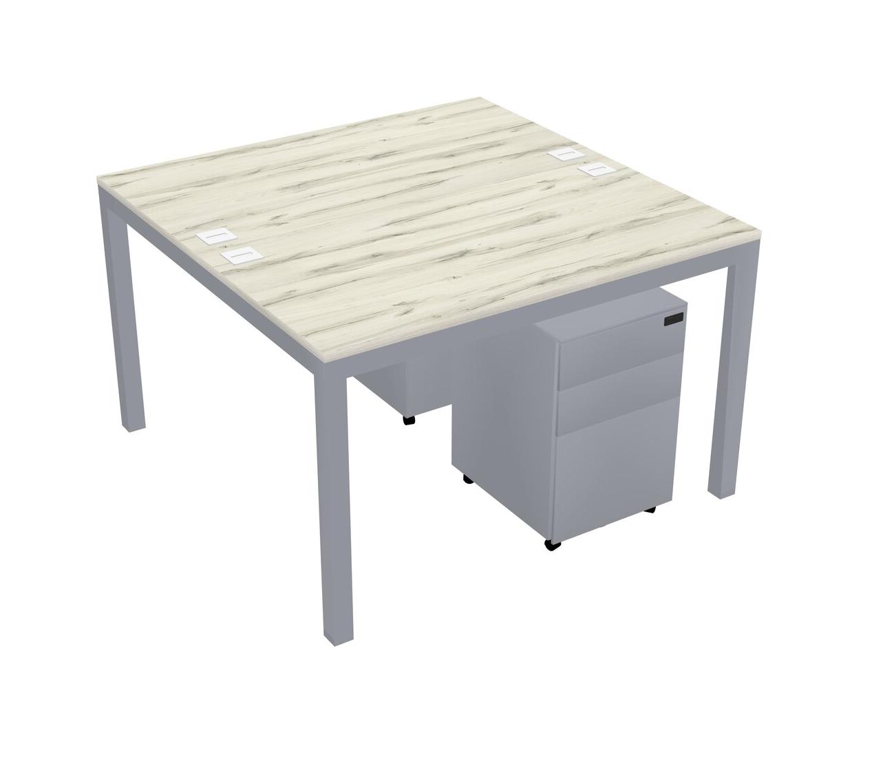 Heinne Holz Shared Rectangular Office Desk With Metal Mobile Drawers For 2 Persons