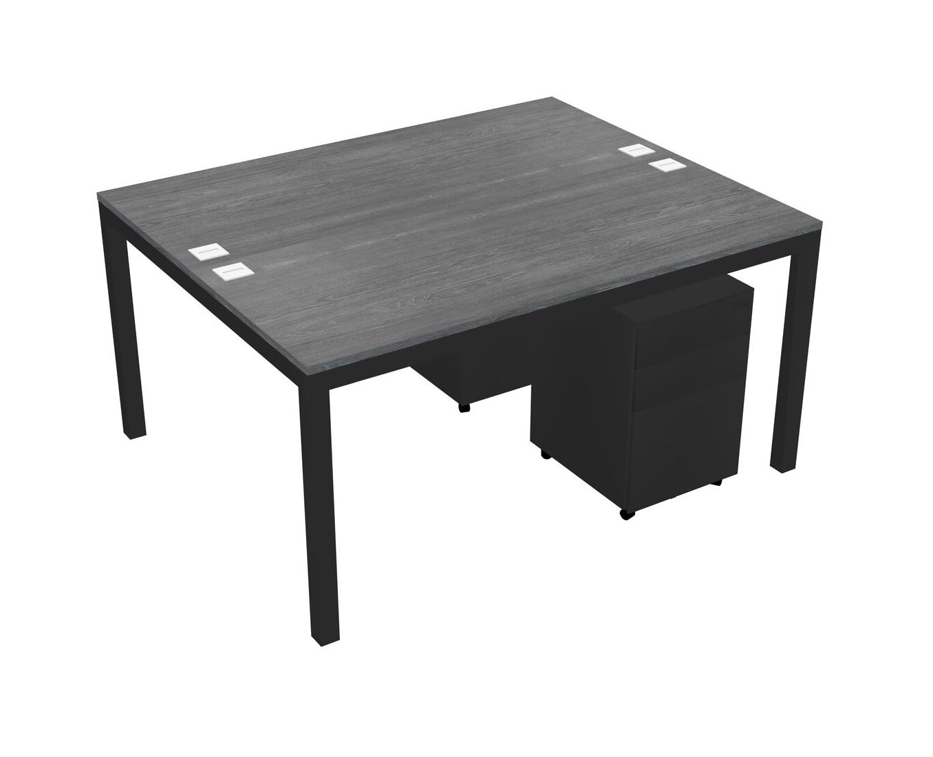 Grey Shared Rectangular Office Desk With Metal Mobile Drawers For 2 Persons